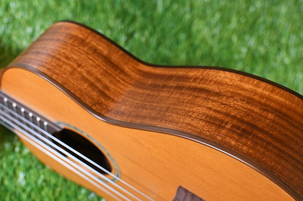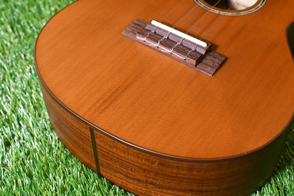 ナチュラルなサテンフィニッシュは薄く手触りも良く、音質、演奏性ともにウクレレ本来の特徴を損なうことなく仕上げられています。
