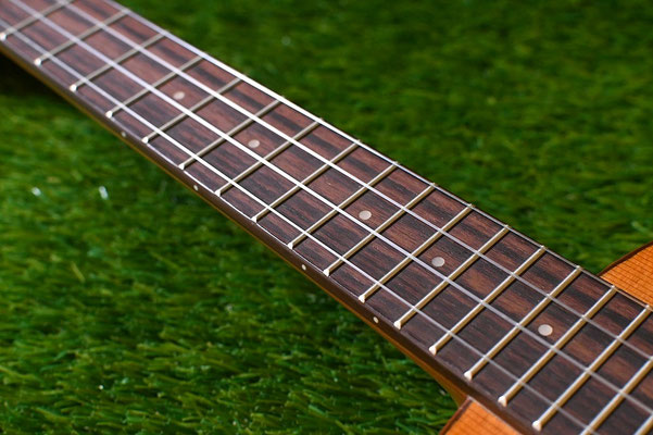 演奏面を左右する指板やブリッジにはローズウッドが使われ、サドルには非常に強度のあるシンセティックボーンが採用されています。