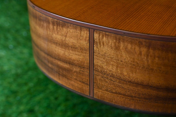 木の質感のある素朴なルックスながら、ブラックカラーのバインディングやロゼッタのアバロン装飾で、高級感が漂います。