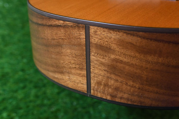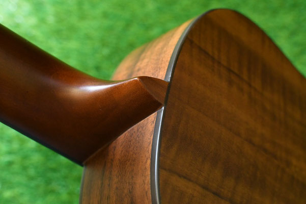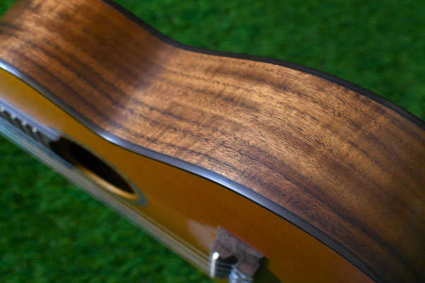 木の質感のある素朴なルックスながら、ブラックカラーのバインディングやロゼッタのアバロン装飾で、高級感が漂います。