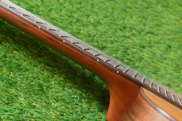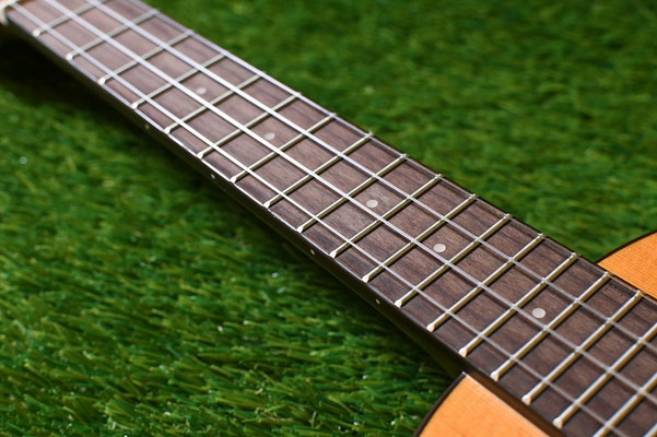 ナチュラルなサテンフィニッシュは薄く手触りも良く、音質、演奏性ともにウクレレ本来の特徴を損なうことなく仕上げられています。