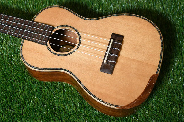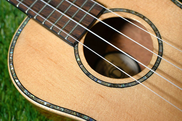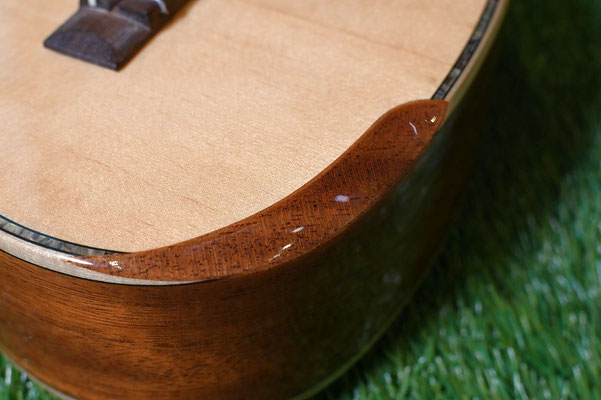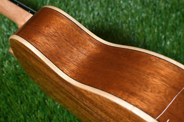 さらにはウクレレを構えた際に肘が当たる部分の角を取る加工であるエルボーコンター仕様!