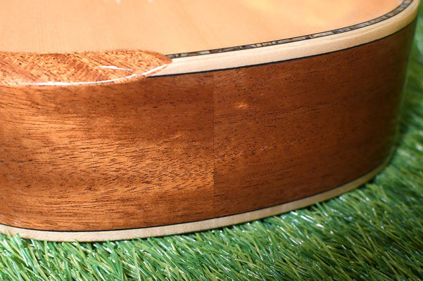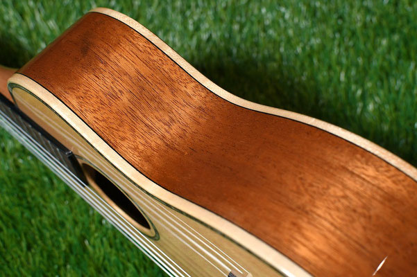スプルース単板ならではの鳴りの良さとサイド・バックのマホガニーが更に余韻を膨らませてくれます。