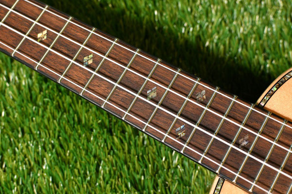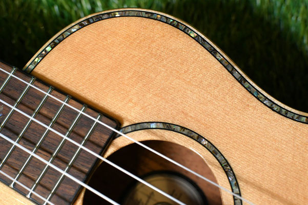 トップは単板、そしてアバロンロゼッタとパーフリング、