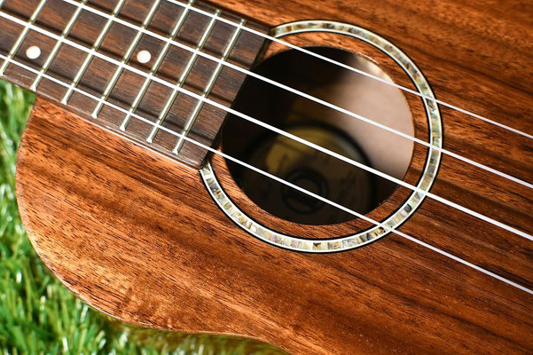 コア材のボディに、アバロンのロゼッタを採用したシンプルながら華のあるモデル