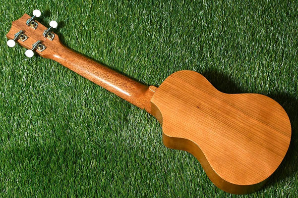 ボディサイズからは考えられないボリュームとコンサートスケールならではの演奏性の高さ、そしてカッタウェイなのでハイフレットに手が届きやすいという