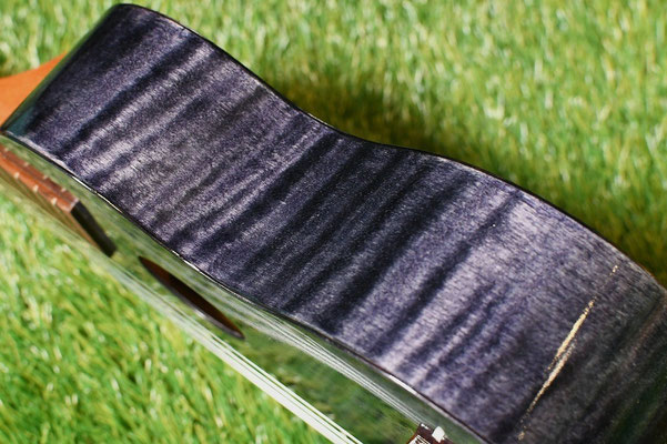 波打つような杢目が美しく、カラーリングも相まって華やかな印象の外観ですね。