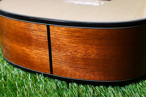 こちらはトップに単板スプルース、サイド・バックにはマホガニーを使用したモデルです。