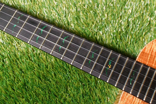 ヘッドのコアツリー、指板のコアリーフのデザインは、当店とKanile'aのコラボによって実現した、