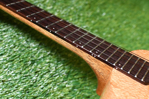 ネック裏が平らなボディ形状により親指の位置が安定しやすく、
