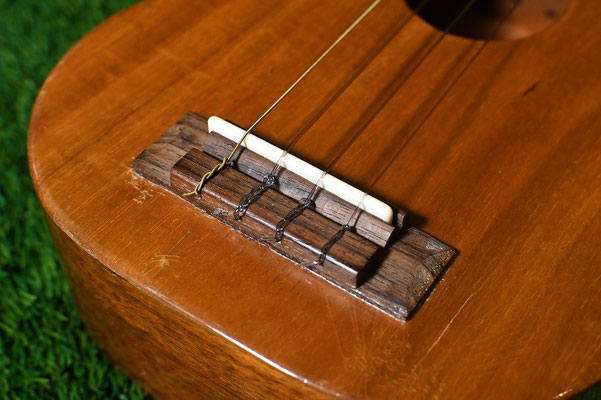 ペグはところどころヒビが見られ、ブリッジ右に割れの修正、