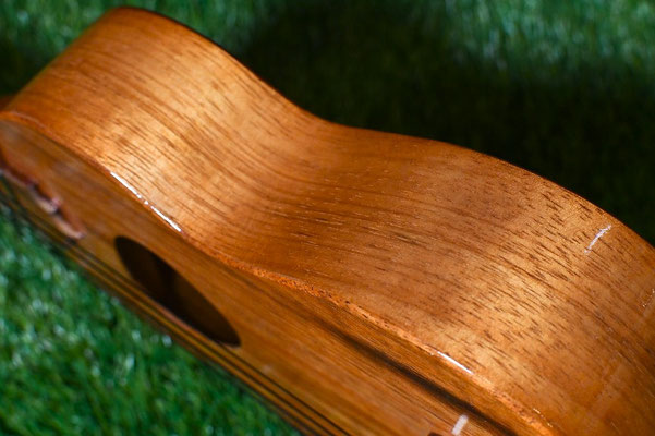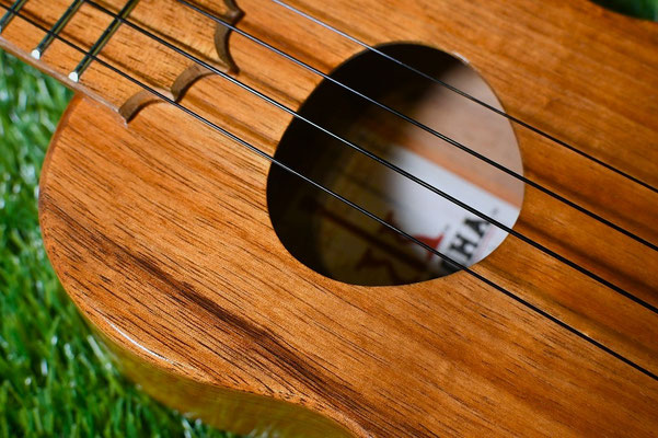 こちらのモデルはボディだけではなく、指板やブリッジにもハワイアンコアを使用。
