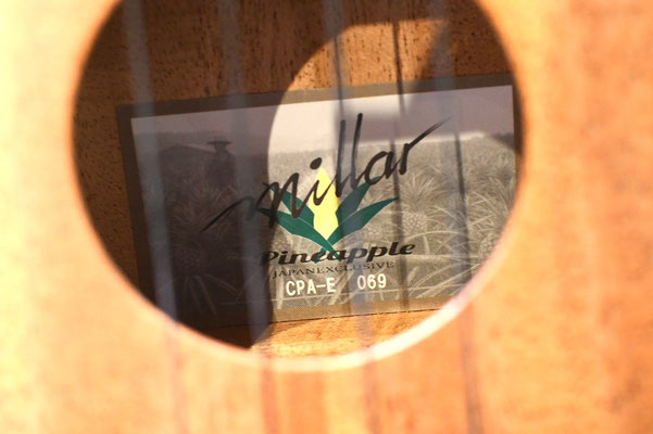 ヘッドインレイには、ウクレレの成長、プレイヤーの成長を願い、パイナップルのつぼみが描かれています。