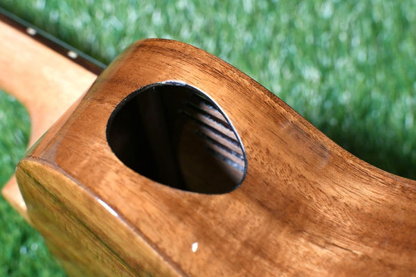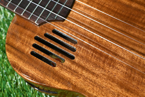 通常とは異なるボディ4弦側に寄ったライン上のサウンドホール、