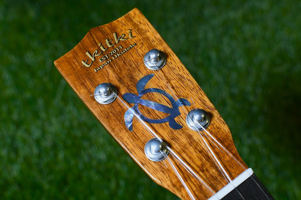 ヘッドにはハワイを代表するウミガメ「ホヌ」のインレイが施されております。