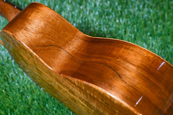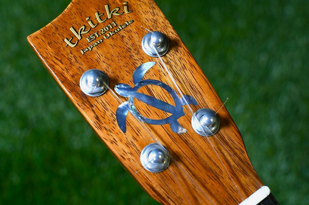 ヘッドにはハワイを代表するウミガメ「ホヌ」のインレイが施されております。